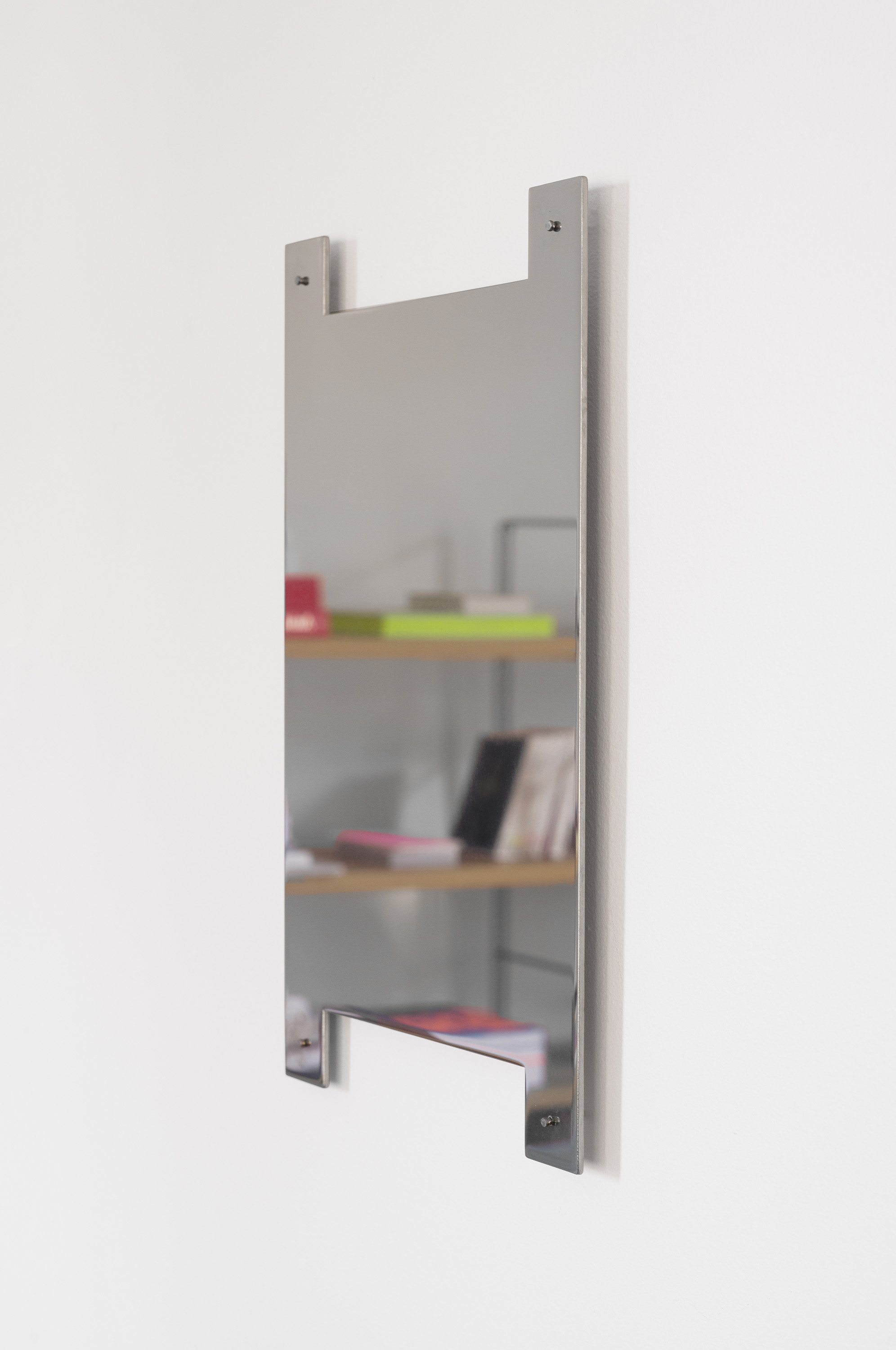 Custom aluminum bookshelve, close-up.